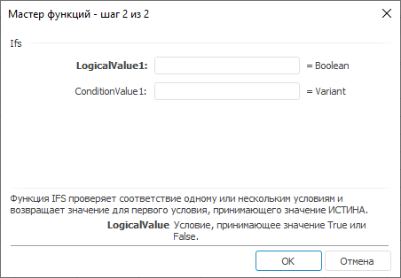 ConditionValue1, ConditionValue2, …, ConditionValueN. Значение, если условие принимает значение ИСТИНА.