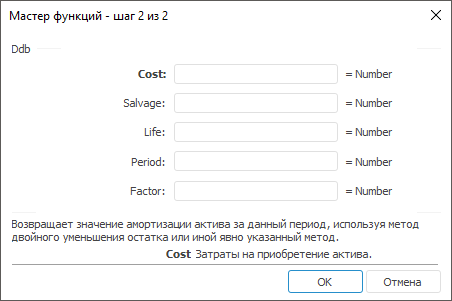 Мастер функций │ Финансовые функции │ Db │ Sln │ Syd │ Vdb │ IFinance.Ddb