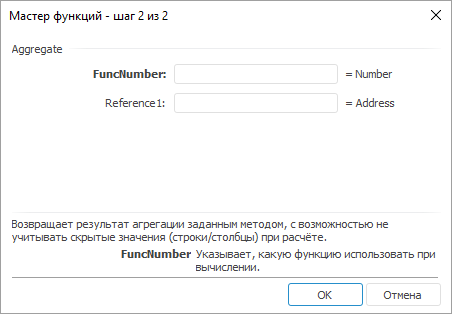 FuncNumber. Номер функции метода агрегации, доступные номера функций: